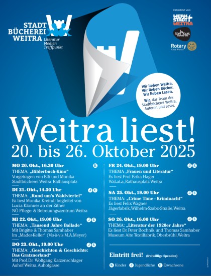 Am Sonntag, 26.10. ab 16 Uhr lesen Dr. Peter Brodnik und Thomas Samhaber aus „Literatur des 1920er Jahre“, die Lesung findet im 1. Stock im Raum der Sonderausstellung statt.