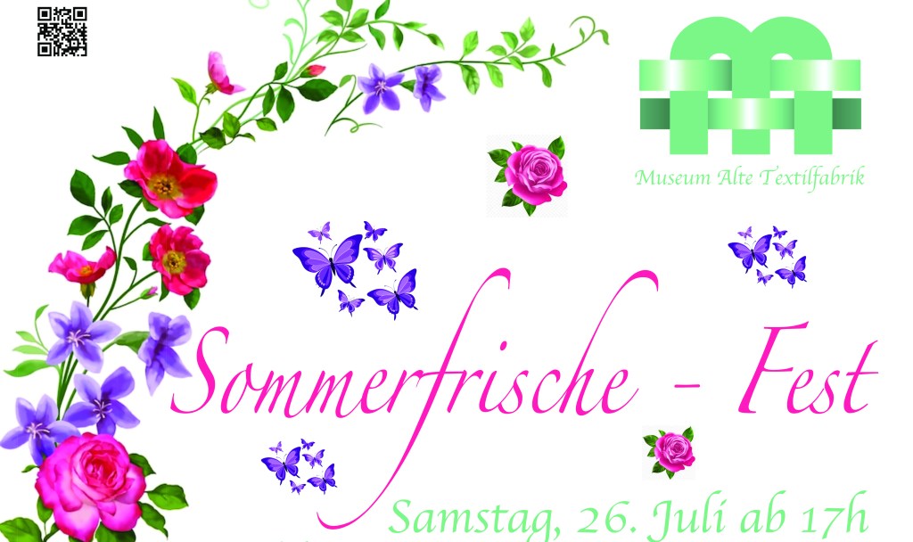 Ob Regen oder Sonnenschein im oder um das Museum Alte Textilfabrik !! Ab 17h PROGRAMM Wir freuen uns auf: ab 17h Claudia Volf und Siegrid Machowetz mit ihrem neuen großartigen extra für unser Fest erarbeitetem Programm „LOLA“ – hauptsächlich deutschsprachige Lieder aus den 1920er Jahren! Songs von „Die fesche Lola“ bis „Macky Messer“, eingerahmt von…Weiterlesen SOMMERFRISCHEFEST am 26. Juli 2025