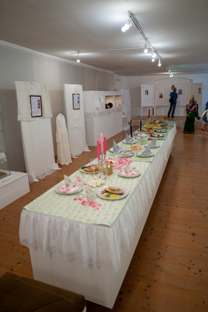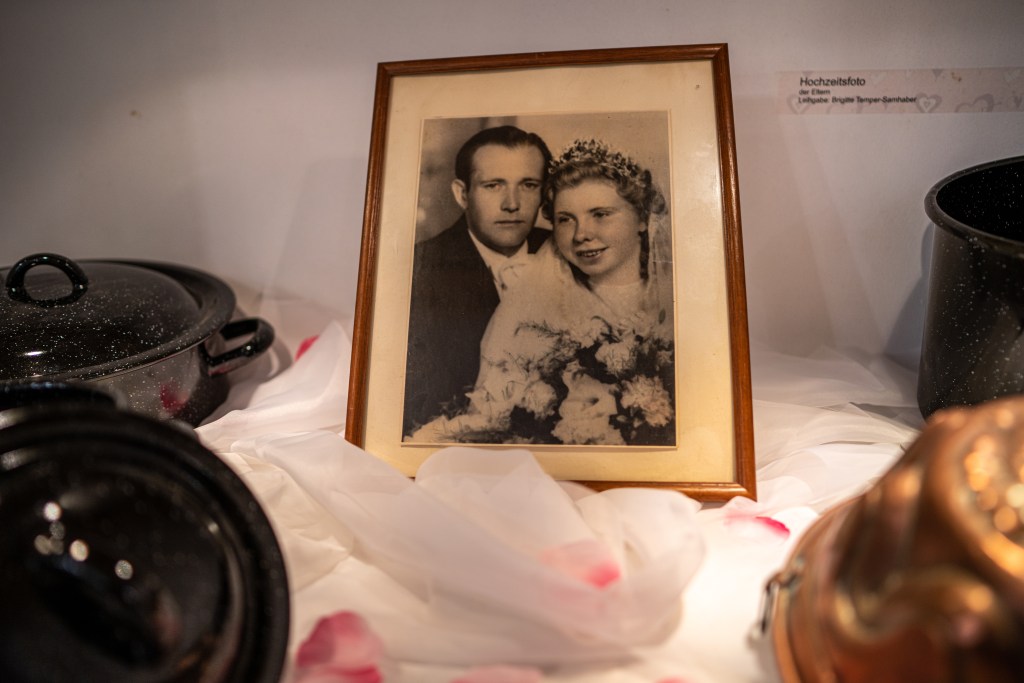 Ausgesuchte Exponate wie etwa Hochzeitskleidung, Gürtel und Kopfschmuck, Fotos, Eheverträge oder kuriose Geschenke machen den schönsten Tag sichtbar. In den letzten Jahren wurde die Sammlung des Museums um drei Hochzeitskleider erweitert.
